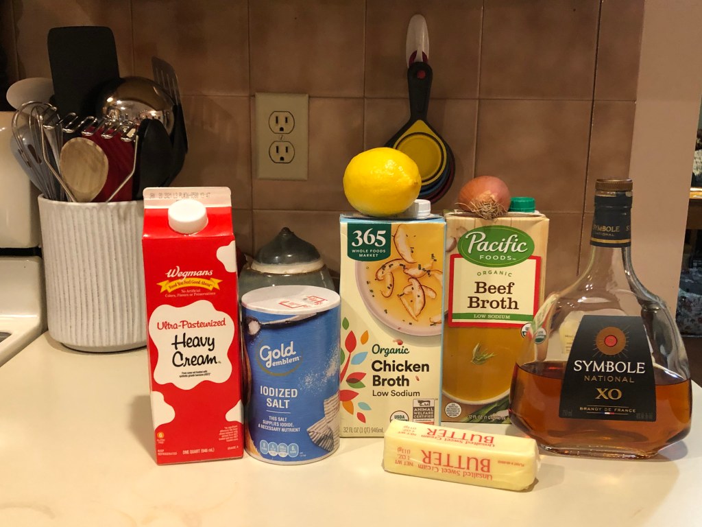 - Pour reduced broth, cream, and 1/4 cup brandy into now-empty skillet; increase heat to high and bring to boil, scraping pan bottom with wooden spoon to loosen browned bits. Simmer until deep golden brown and thick enough to heavily coat back of metal tablespoon or soup spoon, about 5 minutes. Off heat, whisk in remaining 3 tablespoons butter, remaining 1 tablespoon brandy, lemon juice or vinegar, and any accumulated meat juices. Adjust seasonings with salt.