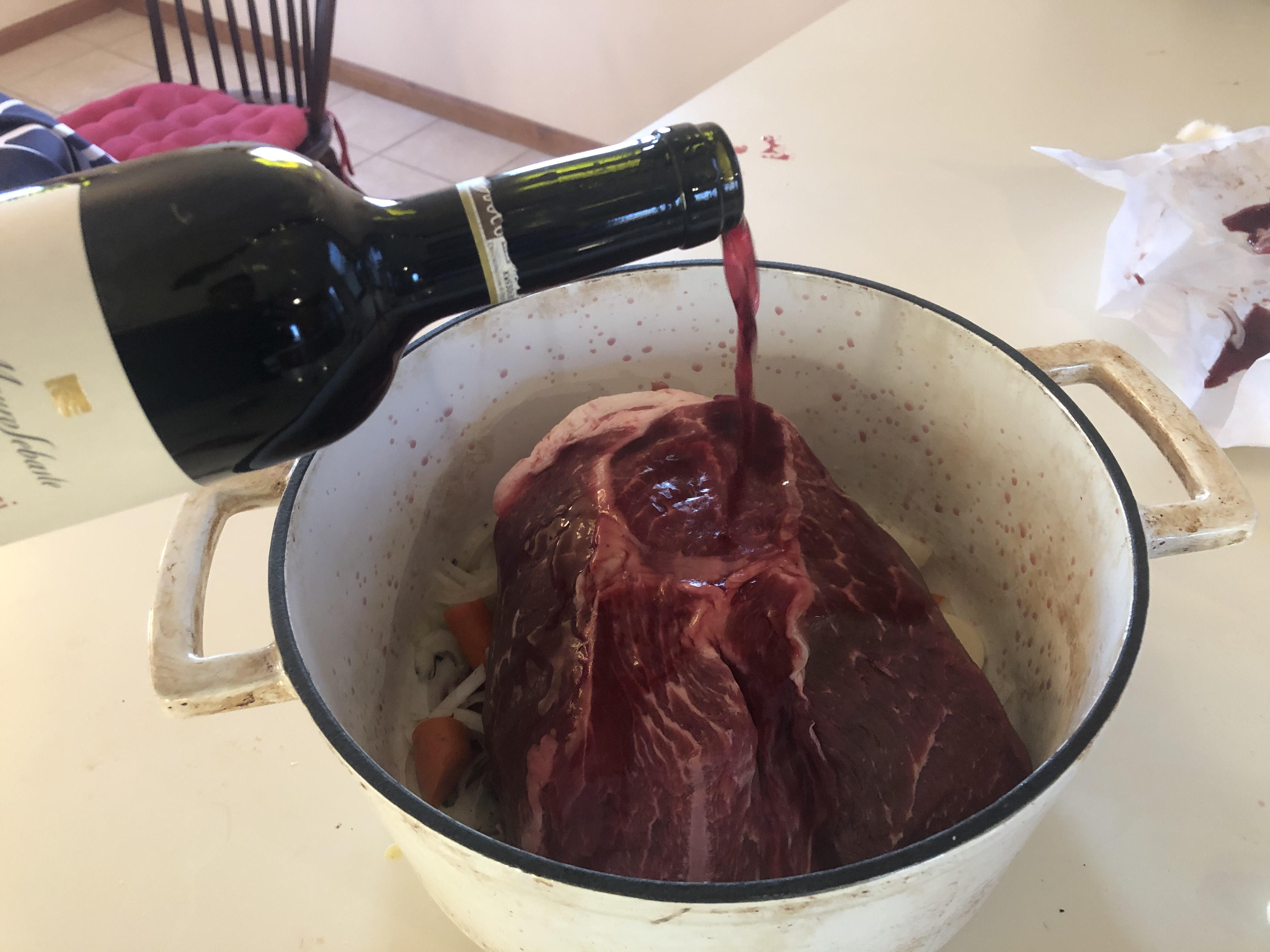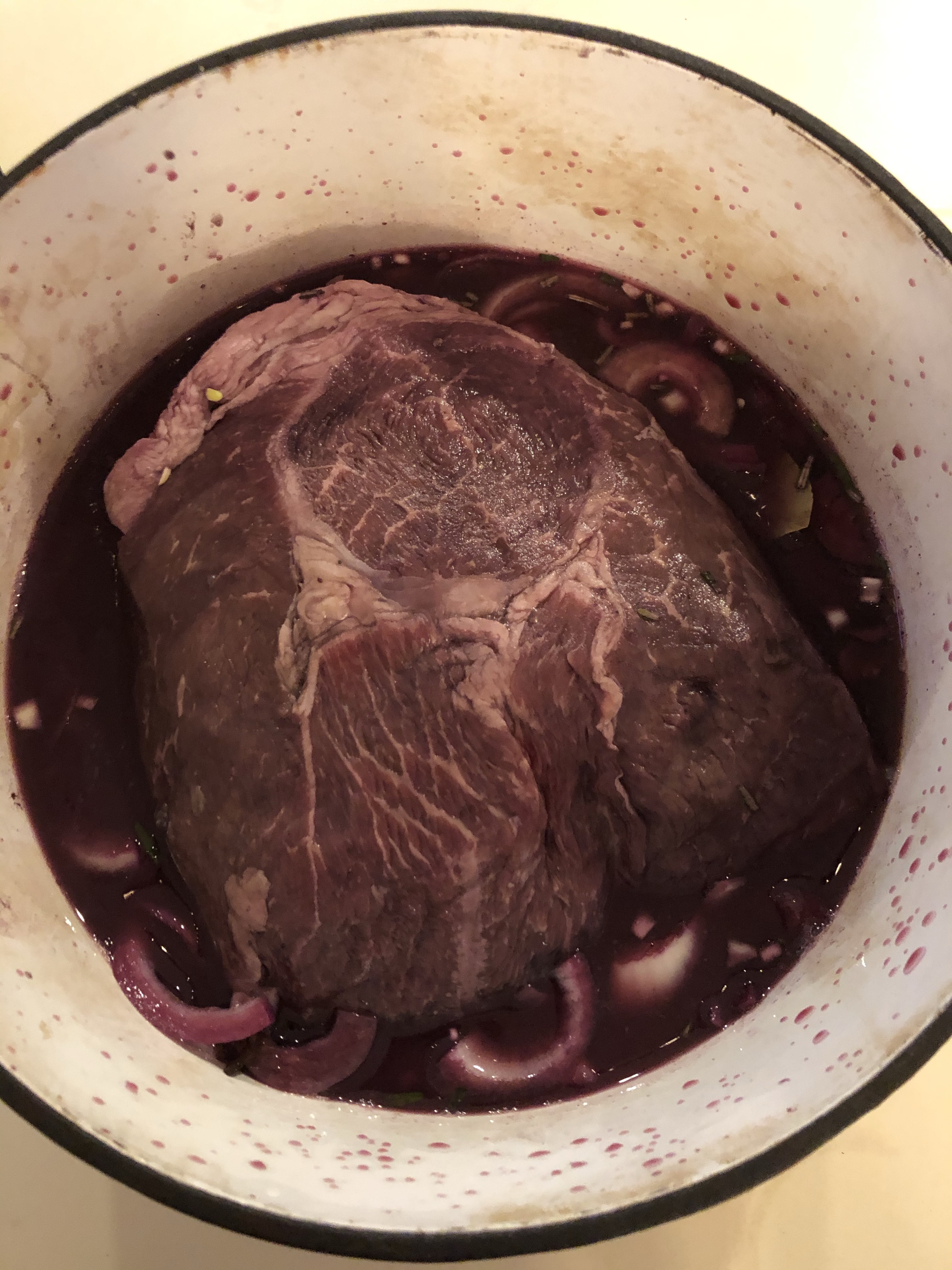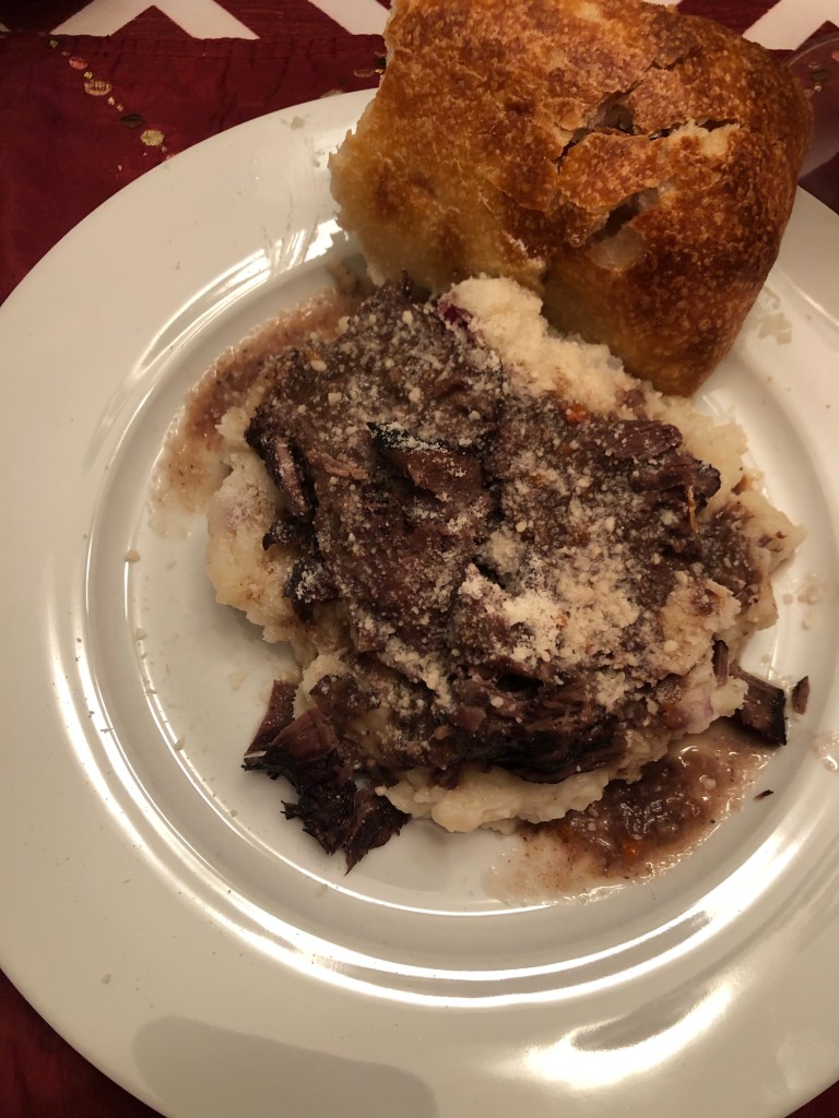 Now in an effort to bring positivity to this week, Braised Beef in Barolo. We got excited about this dish after watching “Two Greedy Italians – Braised beef in red wine, Brasato di Manzo in Vino rosso” where Gennaro Contaldo made the dish in a wine cellar. We took the recipe from an old Italian cook book my husband’s aunt used to own and wow was it delicious!