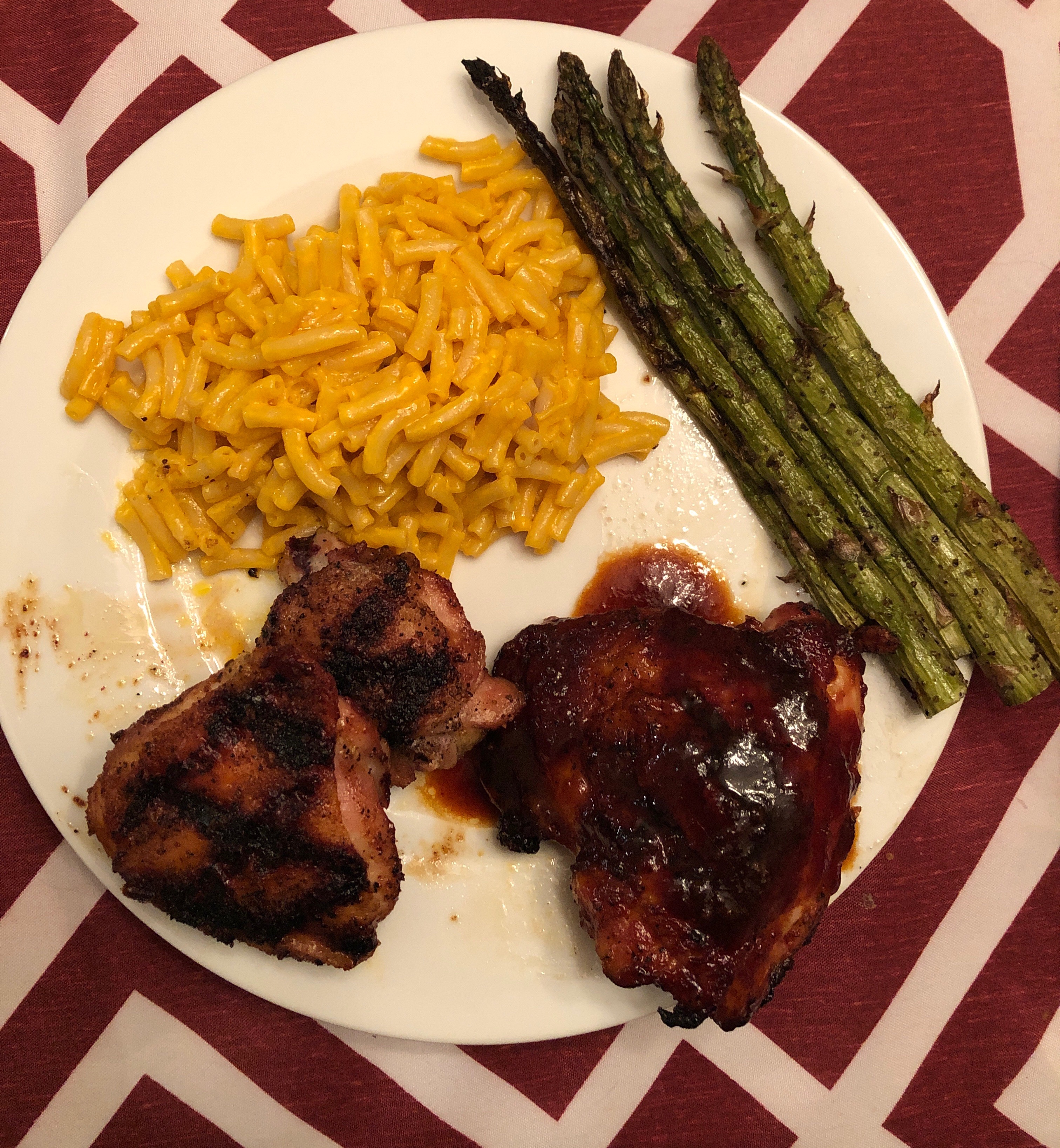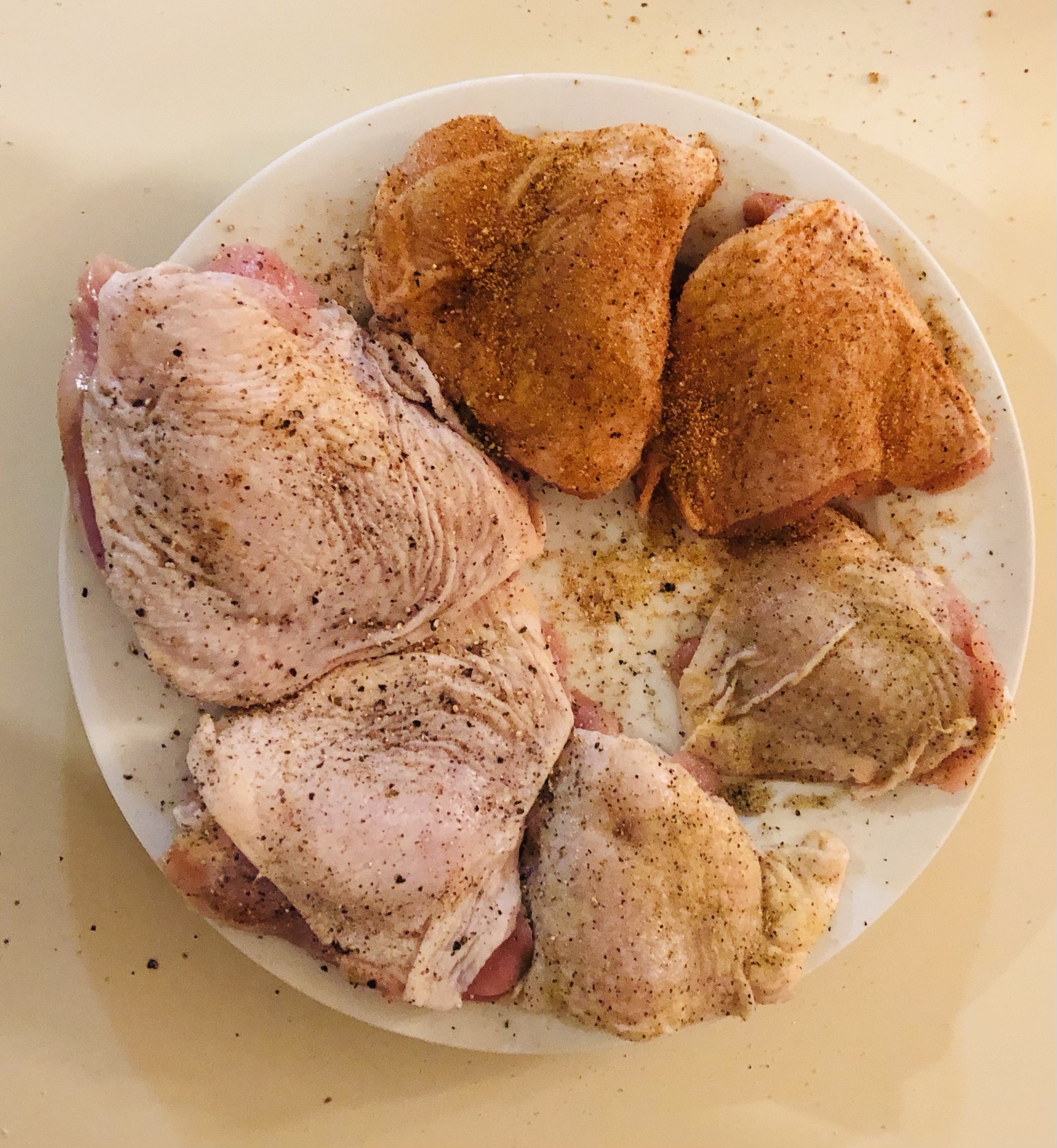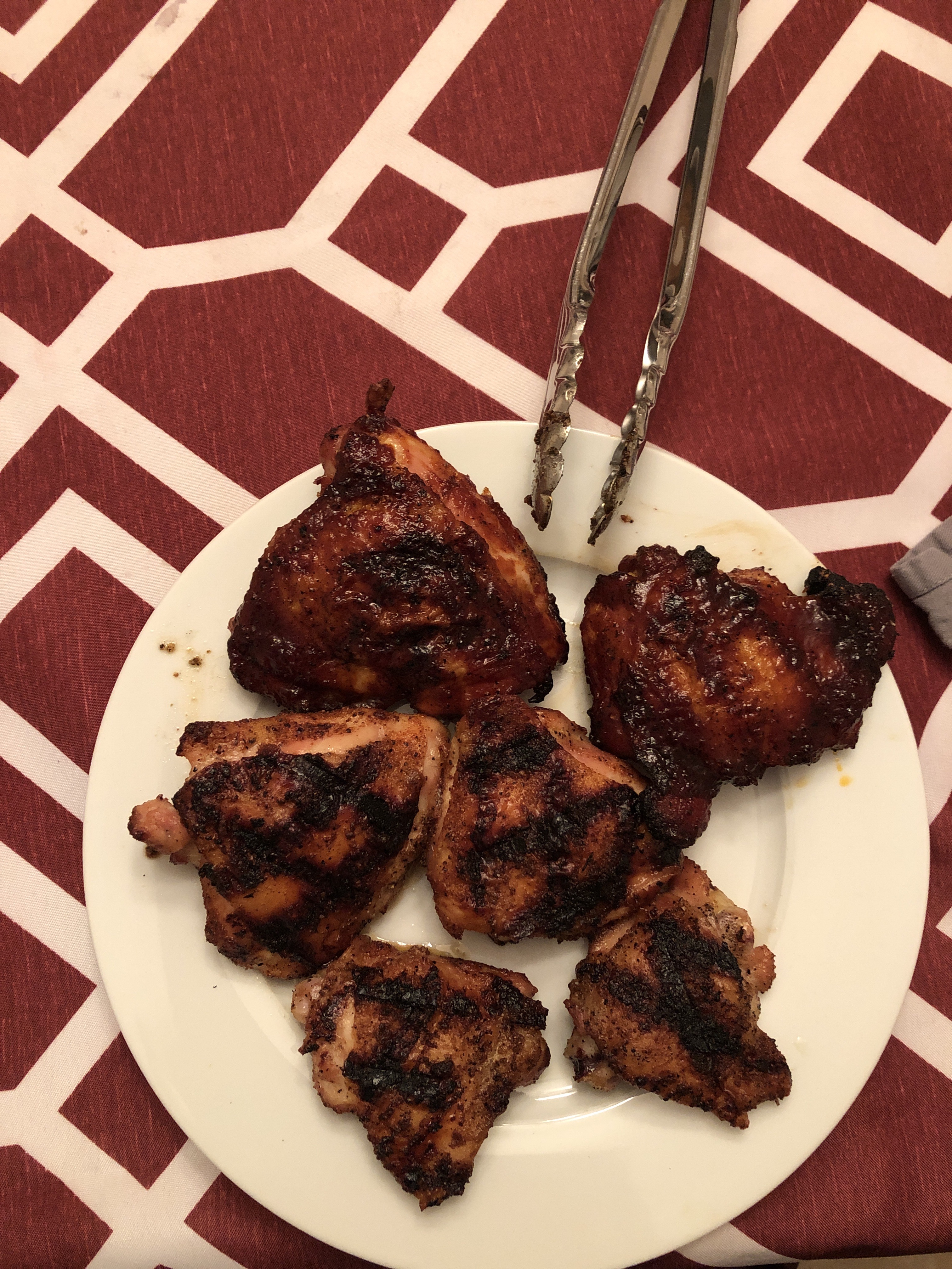 What says Super Bowl Sunday like wings? We, of course, couldn’t get wings since we decided to make something today at the last minute. However we did get bone-in, skin-on chicken thighs and I am super excited to enjoy some grilled chicken with a variety of flavors. For today, we made an assortment of different styles, using two different dry rubs and a homemade BBQ sauce found in Bon Appetit. Of course, depending on what you like, you can always use different rubs or a BBQ sauce of your choosing.
