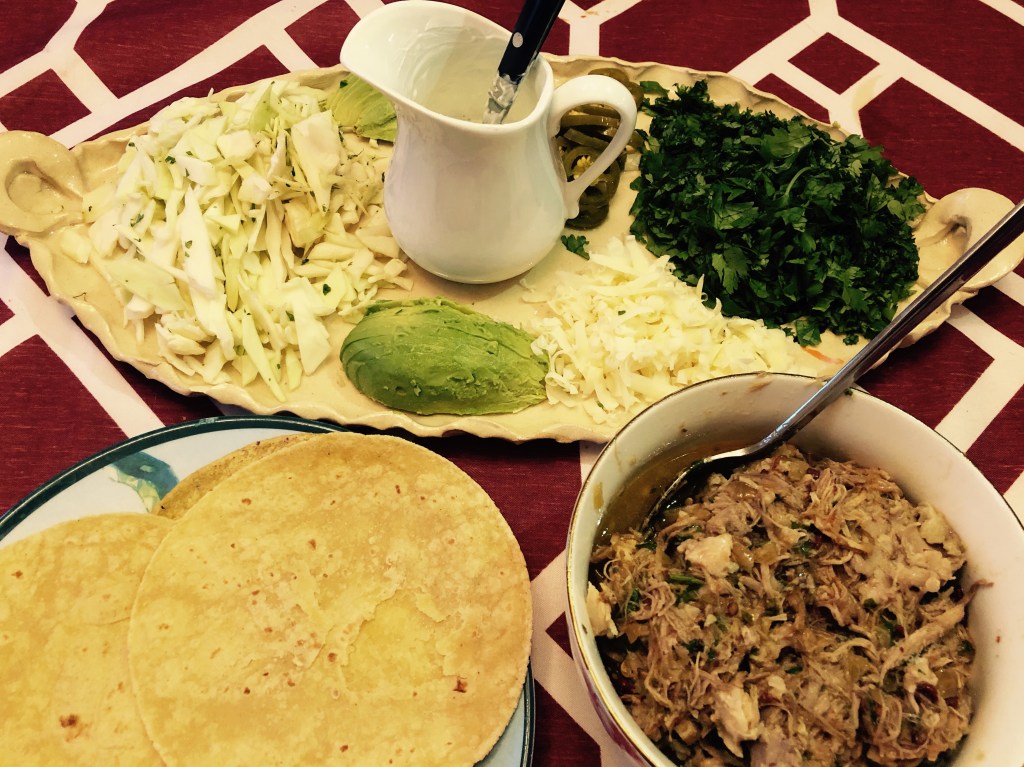 The recipe below can be made with chicken as well but we highly recommend pork shoulder. It has the flavor and texture to really stand up to the bold seasonings and the long cook. Also the toppings below are recommendations but feel free to get creative!