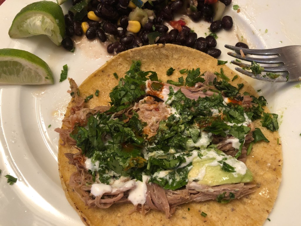 Tonight we are having some of our favorite tacos, or at least they are my favorite. We actually found this recipe on Pinterest about 2 years ago when we were living in a small apartment. We had always loved food but the prep space was minimal and having something cooked in a slow-cooker made our lives ten times easier! Before the days of slow cooking meats on a smoker, we had this recipe to keep us going.