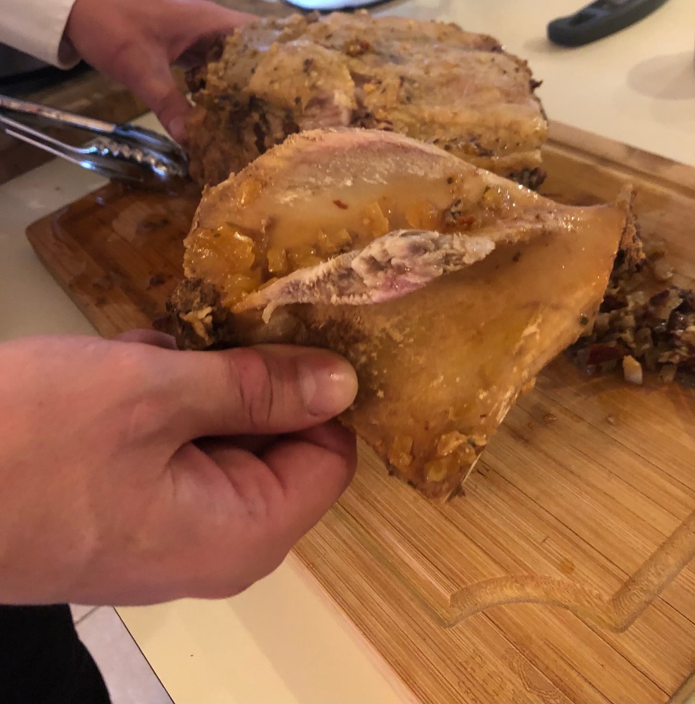 - 8 pounds of pork shoulder, bone in