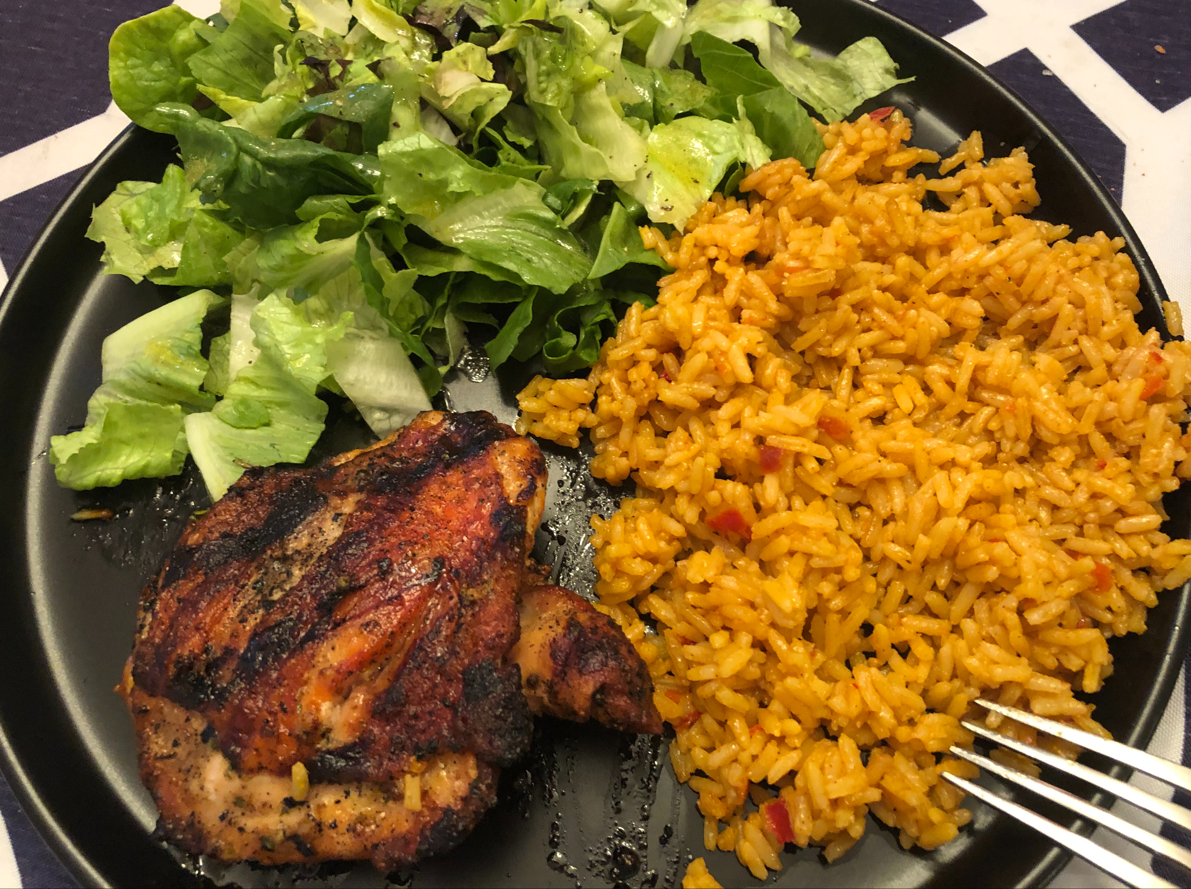 How is it already almost the end of June?! I am still amazed how fast this year is going. Of course everyone is here for food and I am so excited to share this great dish with you all. As a bit of background of where this recipe came from: my husband works at a charter school in a Latin-American neighborhood, and over the years we have developed a taste for the region’s cuisine. From marinated carne asada to whole fried fish and pupusas, we’ve really expanded our palates! On a whim a few weeks ago, my husband was at a small local grocery store near his school to pick up some last-minute supplies, and bought some sazon and adobo on a whim. As luck would have it, our latest issue of Cook’s Illustrated arrived in the mail that day, with a promising recipe for “Nuyorican” grilled chicken that called for these classic Latin-American seasonings. We paired tonight’s dinner with rose and mixed salad.