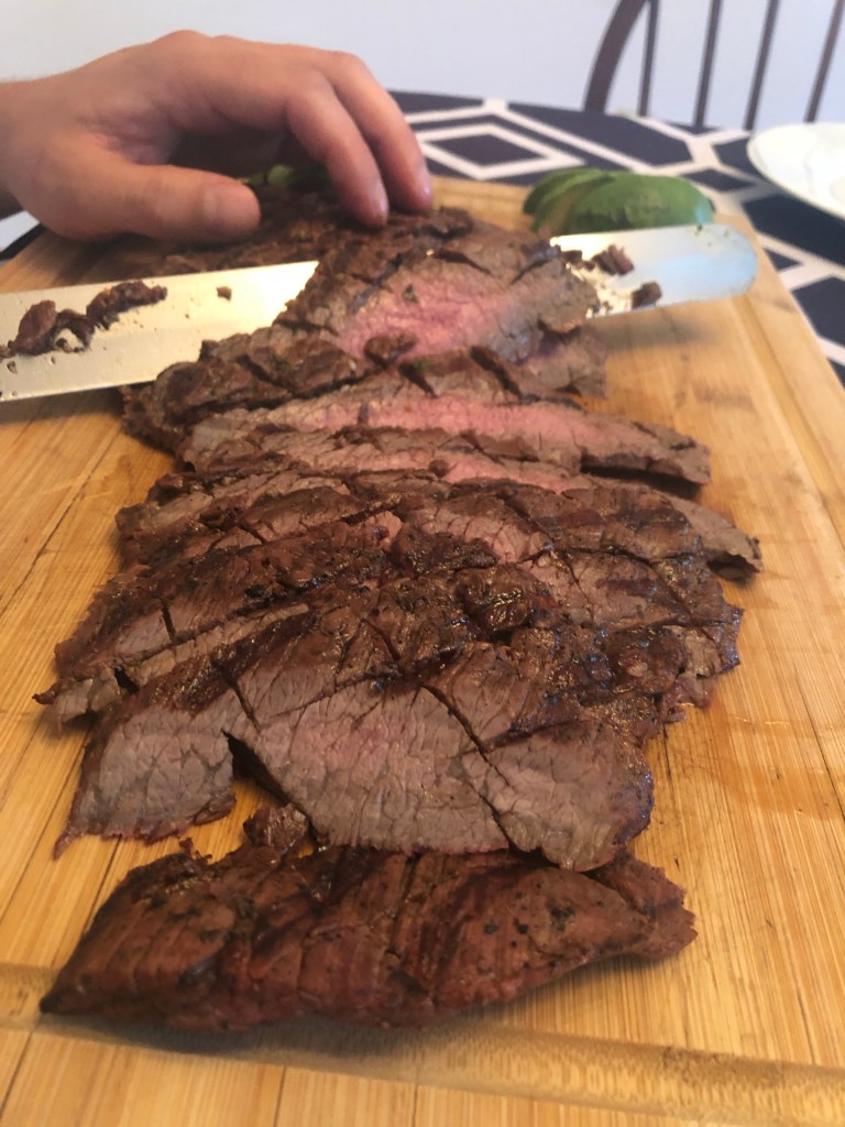 Carne Asada – the entry point for me into the world of authentic Latin-American food. My husband actually was the driving force that brought this into our house. He was introduced to marinated, Latin-American style “carne asada” a few years ago. He was leaving work late, and the school handy man, a Salvadoran immigrant, was in the parking lot cooking up a going-away feast for some visiting relatives. His co-worker insisted that he sit and join them. He was already something of a “steak snob” at this point, but he was blown away by the flavors of this well-done steak served to him on a paper plate in the school parking lot. In the ensuing years, he and Carlos became great friends. We never got the recipe for that steak (turns out it was purchased from a local Central-American butcher shop), but eventually found this one as a pretty close approximation.