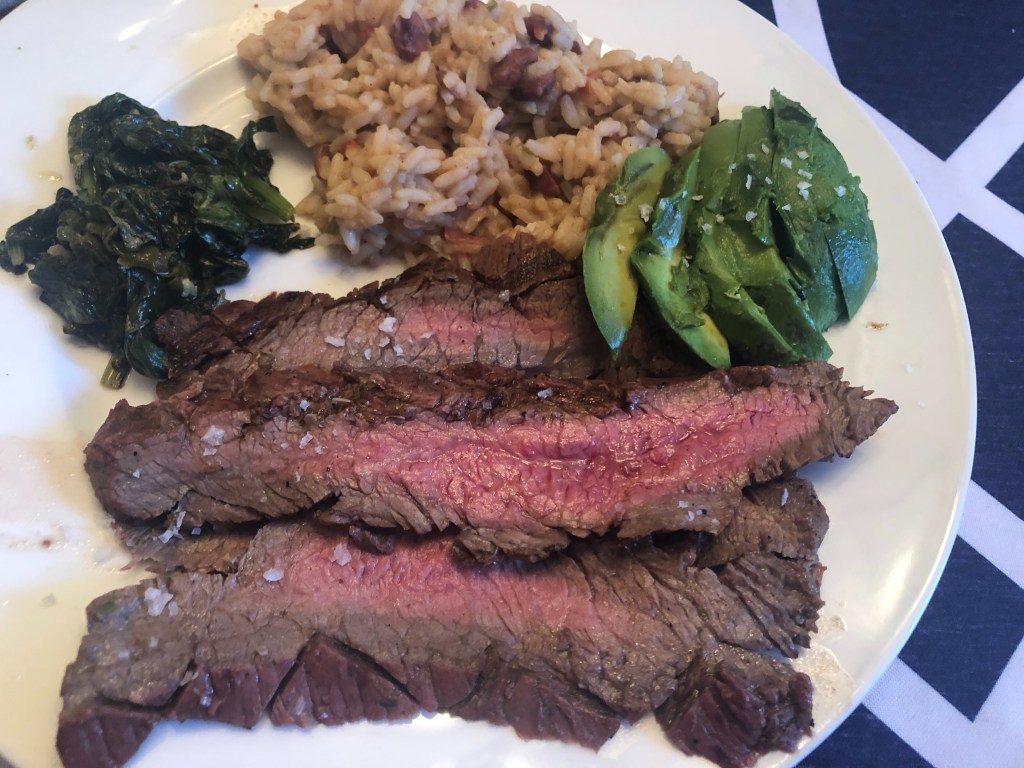 Over the years we have iterated on the recipe but the basics of the marinate have stayed the same. We’ve tried this dish with different cuts of cheap steak and sides. However the method we keep coming back to is skirt or flank, rice & beans as a side (usually avocado as well), and cooking the marinade for additional saucy flavor. I really enjoyed our dinner tonight and hope you enjoyed reading about it!